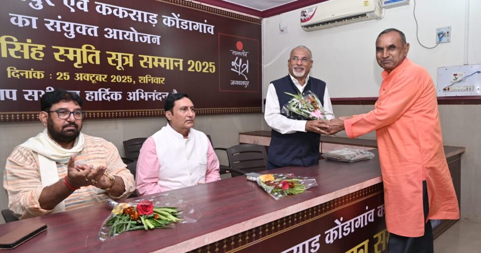 मनेन्द्रगढ़ (एमसीबी) । दक्षिणी छत्तीसगढ़ के संभागीय मुख्यालय जगदलपुर मैं आयोजित कवि सम्मेलन में उत्तरी छत्तीसगढ़ के रचनाकारों की कविताओं की गूंज से देश भर के साहित्यकार परिचित हुए. मनेन्द्रगढ़ के वरिष्ठ कवि बीरेन्द्र श्रीवास्तव की कविता –   ” मैं जिस मिट्टी में जन्मा हूं, वह सुरगुंजा की माटी है अपभ्रंशो ने सरगुजा कहा, कोरिया की कारी माटी है”   की प्रस्तुति ने  सरगुजा और बस्तर की संस्कृति और आदिवासी जनजीवन को वनवासी राम की यादों से जोड़ दिया.  उन्होंने अपनी कविताओं  मे शहर में बदलते गांव की ऐसी तस्वीर प्रस्तुत की जिसके आलोक से पूरा जगदलपुर आलोकित हो गया. चेम्बर आफ कामर्स सभागार मे आयोजित इस  कवि सम्मेलन का संचालन कर रही अंचल की  चर्चित कवियत्री श्रीमती अनामिका चक्रवर्ती ने छोटी छोटी रचनाओं के साथ कवियों को आमंत्रित कर सधे हुए संचालन की प्रतिभा का परिचय दिया. वहीं  अपनी मानवीय संवेदनाओं के गहन विचारों की चर्चित कविताओं से लोगों का मन मोह लिया. मनेन्द्रगढ़ की माटी के रचनाकार पुष्कर तिवारी की कविताओं और गीत प्रस्तुति से मंच अभिभूत हो गया.   मनेन्द्रगढ़ के उभरते गायक एवं कवि रमेश गुप्ता की गजलों की प्रस्तुति से श्रोता झूम उठे और प्रत्येक शेर पर वाहवाही दी. इस अवसर पर “बीरेन्द्र श्रीवास्तव की चुनी हुई कविताएं” एवं  रमेश गुप्ता के गजल वीडियो का लोकार्पण भी किया गया । स्मरणीय है कि जगदलपुर के वरिष्ठ साहित्यकार विजय सिंह द्वारा स्थापित ठाकुर पूरन सिंह स्मृति 28 वें सूत्र सम्मान समारोह 2025 इस वर्ष जगदलपुर में आयोजित किया गया.जिसमें देशभर के चुने हुए साहित्यकारों को आमंत्रित किया गया था ।
