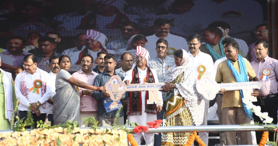बलरामपुर, राज्योत्सव के दूसरे दिन कृषि मंत्री श्री रामविचार नेताम बलरामपुर जिले के कार्यक्रम में शामिल हुए। इस दौरान उन्होंने जिले के अंतर्गत जनपद पंचायत राजपुर के दो हितग्राहियों को प्रधानमंत्री आवास योजना के तहत पक्के मकान की चाबी तथा तीन हितग्राहियों को आवास स्वीकृति पत्र प्रदान कर उन्हें शुभकामनाएं दीं।कार्यक्रम के दौरान जब मंत्री श्री नेताम के हाथों हितग्राहियों को उनके घर की चाबी और स्वीकृति पत्र मिले, तो उनके चेहरों पर खुशियां थी।