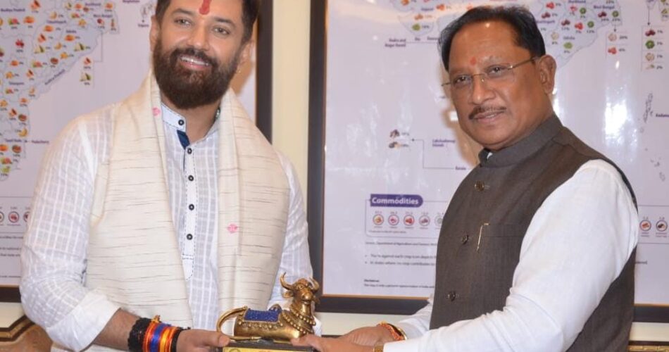 रायपुर – मुख्यमंत्री  विष्णुदेव साय ने आज नई दिल्ली में केंद्रीय खाद्य एवं उपभोक्ता मामलों के मंत्री श्री चिराग पासवान से उनके कार्यालय में सौजन्य मुलाकात की। इस दौरान छत्तीसगढ़ से जुड़े अनेक जनहित विषयों पर रचनात्मक और सार्थक चर्चा हुई। मुख्यमंत्री श्री साय ने विशेष रूप से राज्य में खाद्य सुरक्षा, कृषि-आधारित उद्योगों और फूड प्रोसेसिंग सेक्टर से जुड़े महत्वपूर्ण मुद्दों पर ध्यान आकर्षित किया।