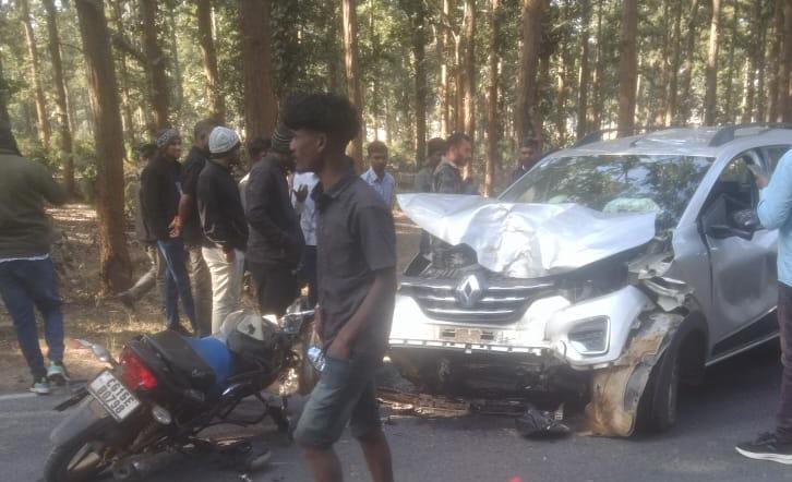 वाड्राफनगर क्षेत्र के रजखेता के पास को दोपहर में एक दर्दनाक सड़क हादसा हो गया। वाड्राफनगर की ओर से आ रही कार क्रमांक CG 30 D 4100 की सामने से आ रही मोटरसाइकिल से जोरदार भिड़ंत हो गई।