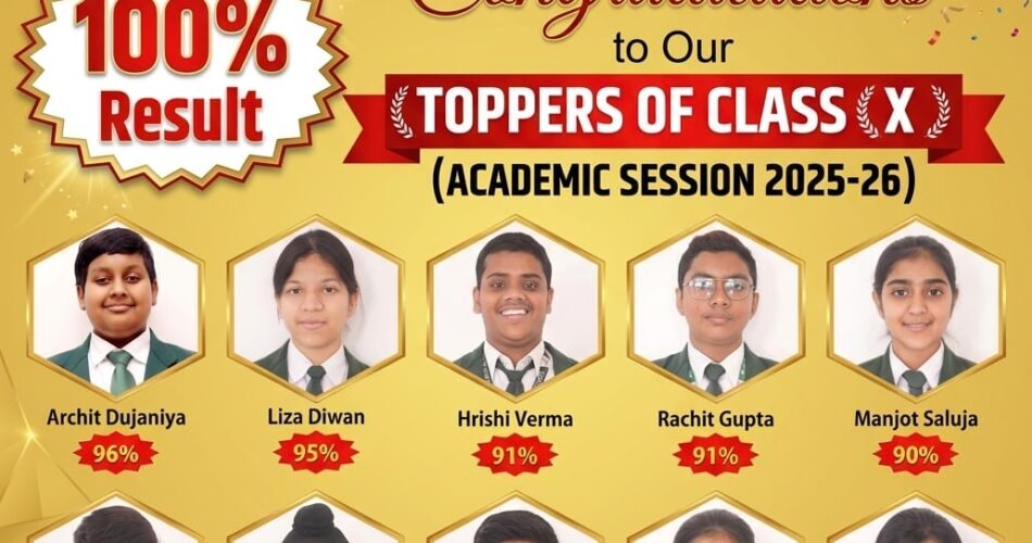 मनेन्द्रगढ़ (एमसीबी) । संभाग के प्रतिष्ठित शिक्षण संस्थान दिल्ली वर्ल्ड पब्लिक स्कूल मनेन्द्रगढ़ ने एक बार फिर शिक्षा के क्षेत्र में अपनी उत्कृष्टता सिद्ध करते हुए शैक्षणिक सत्र 2025–26 में कक्षा दसवीं का शत- प्रतिशत परिणाम हासिल किया है। इस उपलब्धि ने न केवल विद्यालय का मान बढ़ाया है, बल्कि पूरे क्षेत्र को गौरवान्वित किया है। विद्यालय की यह सफलता विद्यार्थियों की कड़ी मेहनत, अनुशासन, शिक्षकों के समर्पण तथा सुदृढ़ शैक्षणिक व्यवस्था का परिणाम है। मेधावी विद्यार्थियों में अर्चित दुजानिया ने 96 प्रतिशत अंक प्राप्त कर प्रथम स्थान अर्जित किया, जबकि लिज़ा दीवान ने 95 प्रतिशत अंक के साथ द्वितीय स्थान प्राप्त किया। हृषि वर्मा एवं रचित गुप्ता ने 91-91 प्रतिशत अंक प्राप्त कर संयुक्त रूप से तृतीय स्थान हासिल किया। मनजोत सलूजा ने 90 प्रतिशत अंक प्राप्त कर उत्कृष्ट प्रदर्शन की श्रेणी में स्थान बनाया। इसके अतिरिक्त इशान साहू 86 प्रतिशत, हरनीश चावला 85 प्रतिशत, अर्नव अग्रवाल 84.4 प्रतिशत, अवंतिका सिंह 83.6 प्रतिशत एवं अदिति प्रधान 83.2 प्रतिशत ने भी सराहनीय अंक प्राप्त कर विद्यालय का नाम रोशन किया।