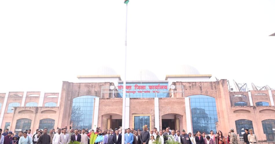 बलरामपुर  गणतंत्र दिवस के 77 वीं वर्षगांठ के अवसर पर कलेक्टर  राजेन्द्र कटारा ने संयुक्त जिला कार्यालय भवन के प्रांगण में प्रातः 07.30 बजे ध्वजारोहण किया। तत्पश्चात सभी अधिकारियों एवं कर्मचारियों ने राष्ट्रगान एवं वंदेमातरम का गायन किया तथा भारत माता की जय व गणतंत्र दिवस अमर रहे के नारे लगाये। इसके उपरांत कलेक्टर श्री कटारा ने अधिकारियों के साथ परिसर स्थित महात्मा गांधी एवं डॉ. भीमराव अम्बेडकर के प्रतिमा पर माल्यार्पण किया।