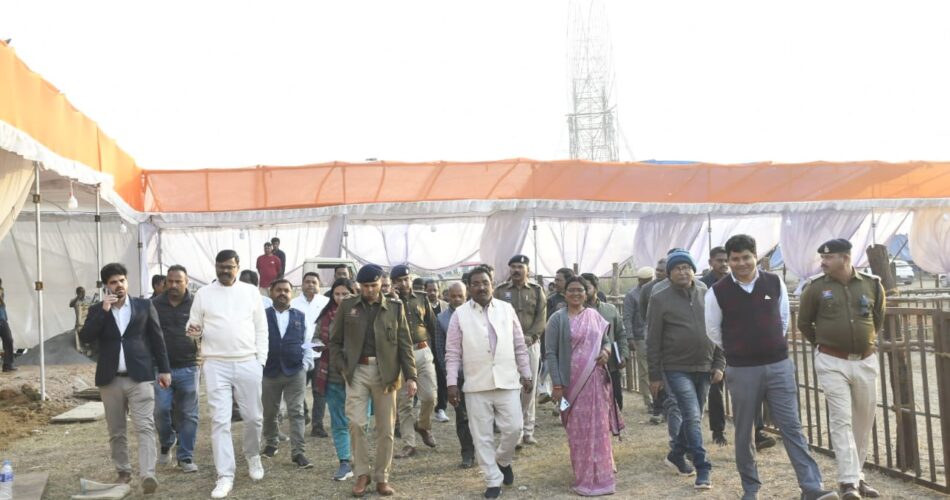 महोत्सव की तैयारियों का जायजा लेने सामरी विधायक श्रीमती उद्धेश्वरी पैकरा, कलेक्टर श्री राजेन्द्र कटारा, पुलिस अधीक्षक श्री वैभव बेंकर रमनलाल एवं वनमंडलाधिकारी श्री आलोक बाजपेयी, रेड क्रॉस सोसायटी अध्यक्ष श्री ओम प्रकाश जायसवाल, नगर पालिका उपाध्यक्ष श्री दिलीप सोनी सहित अन्य जनप्रतिनिधिगण, जिला पंचायत सीईओ एवं नोडल अधिकारी श्रीमती नयनतारा सिंह तोमर, अपर कलेक्टर एवं सहायक नोडल अधिकारी श्री अभिषेक गुप्ता मेला स्थल पहुँचे। निरीक्षण के दौरान उन्होंने मेला परिसर, तपेश्वर महादेव मंदिर, सामूहिक विवाह स्थल, लगाए जा रहे विभागीय स्टॉल, मुख्य मंच एवं बैठक व्यवस्था का अवलोकन किया। इस दौरान संबंधित अधिकारी-कर्मचारियों को सभी व्यवस्थाएं समयबद्ध, सुव्यवस्थित एवं सुरक्षित रूप से पूर्ण करने के आवश्यक दिशा-निर्देश दिए गए।