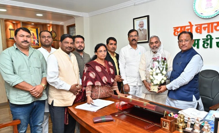 रायपुर। मुख्यमंत्री विष्णु देव साय से आज राजधानी रायपुर स्थित मुख्यमंत्री निवास कार्यालय में जिला साहू संघ, खैरागढ़–छुईखदान–गंडई के प्रतिनिधिमंडल ने सौजन्य मुलाकात की। प्रतिनिधिमंडल ने कर्मा धाम, खम्हरिया में भक्त शिरोमणि माँ कर्मा एवं भक्त माता राजिम के मंदिर निर्माण के भूमिपूजन एवं शपथ-ग्रहण समारोह में सम्मिलित होने हेतु मुख्यमंत्री श्री साय को आमंत्रित किया।