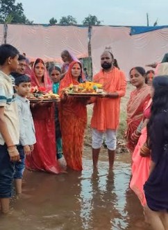 घुनघुट्टा नदी में करीब दो हजार व्रतियों ने दिया अर्घ्य