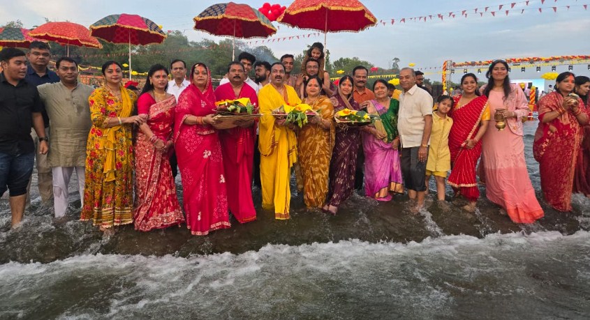 छठ पूजा के तीसरे दिन बड़ी संख्या में छठव्रतियों ने दरिमा रोड में स्थित घुनघुट्टा नदी के किनारे डूबते सूर्य को अर्घ्य दिया। घुनघुट्टा श्याम सेवा समिति के स्वयंसेवक इस दौरान सक्रिय रहे। श्याम घुनघुट्टा सेवा समिति के संरक्षक राकेश गुप्ता ने सभी को छठ पर्व की शुभकामनाएं दी। अस्तांचल सूर्य को अर्घ्य देने के लिए घाट पर हजारों की तादाद में छठव्रती पूरे परिवार के साथ पहुंचे थे। समिति ने श्रद्धालुओं के लिए 2100 घाटों का निर्माण किया है। मंगलवार को उदीयमान सूर्य के अर्घ्य के दौरान बनारस से आए विद्वान पुजारियों की उपस्थिति में गंगा आरती होगी। पूरे घाट क्षेत्र को आकर्षक झंडियों और विद्युत लड़ियों से सजाया गया है, जिससे यहां का आकर्षण बढ़ गया है। इस दौरान समिति के अध्यक्ष रामकुमार गुप्ता के साथ ही स्वयंसेवक सक्रिय रहे।