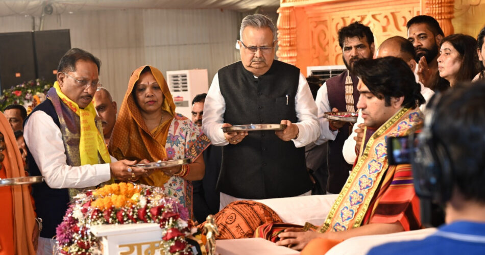 रायपुर। मुख्यमंत्री विष्णुदेव साय जयंती स्टेडियम मैदान भिलाई में आयोजित 5 दिवसीय दिव्य हनुमंत कथा समारोह में आज सपत्निक सम्मिलित हुए। मुख्यमंत्री श्री साय ने कहा कि हम सभी के लिए बड़े सौभाग्य की बात है। पंडित धीरेन्द्र कृष्ण शास्त्री महाराज जी का आशीर्वाद छत्तीसगढ़ को हमेशा मिलता रहा है। उन्होंने बताया कि प्रभु राम ने अपने वनवासकाल का अधिकांश समय छत्तीसगढ़ में बिताए है। छत्तीसगढ़ माता शबरी का भी यह जगह है। इस दौरान उन्होंने भक्त माता ने जूठे भोजन को खिलाई थी।