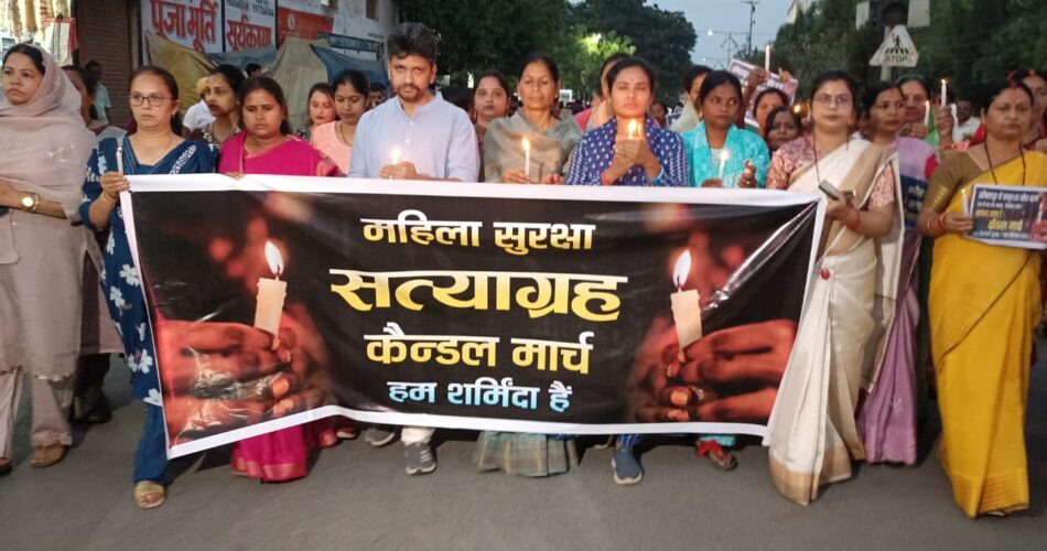 अंबिकापुर। महिला अपराधों में वृद्धि, नशा के बढ़ते कारोबार और इनके प्रति पुलिस निष्क्रियता के विरुद्ध जिला कांग्रेस कमेटी ने मंगलवार को राजीव भवन से सद्भावना चौक (महामाया प्रवेश द्वार) तक मौन कैंडिल मार्च निकाला। कांग्रेस का यह प्रदर्शन उस गरीब महिला को समर्पित था जिसकी हाल में ही दुराचार के बाद जघन्य हत्या कर दी गई थी।