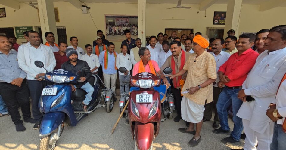 रायपुर। उप मुख्यमंत्री एवं कवर्धा विधायक विजय शर्मा ने विधायक कार्यालय कवर्धा में दो दिव्यांग लाभार्थियों को स्कूटी का वितरण किया। इस अवसर पर उन्होंने ग्राम अमरौडी निवासी धरम सिंह पटेल और ग्राम खिरसाली निवासी उलख राम पटेल को स्कूटी की चाबी सौंपकर उन्हें शुभकामनाएँ दीं। उपमुख्यमंत्री शर्मा ने कहा कि छत्तीसगढ़ सरकार का उद्देश्य दिव्यांगजनों को आत्मनिर्भर बनाना और उनके दैनिक जीवन को सुगम करना है। स्कूटी मिलने से लाभार्थियों को आवागमन में सुविधा होगी तथा वे अपने कार्यों को स्वतंत्र रूप से कर सकेंगे।