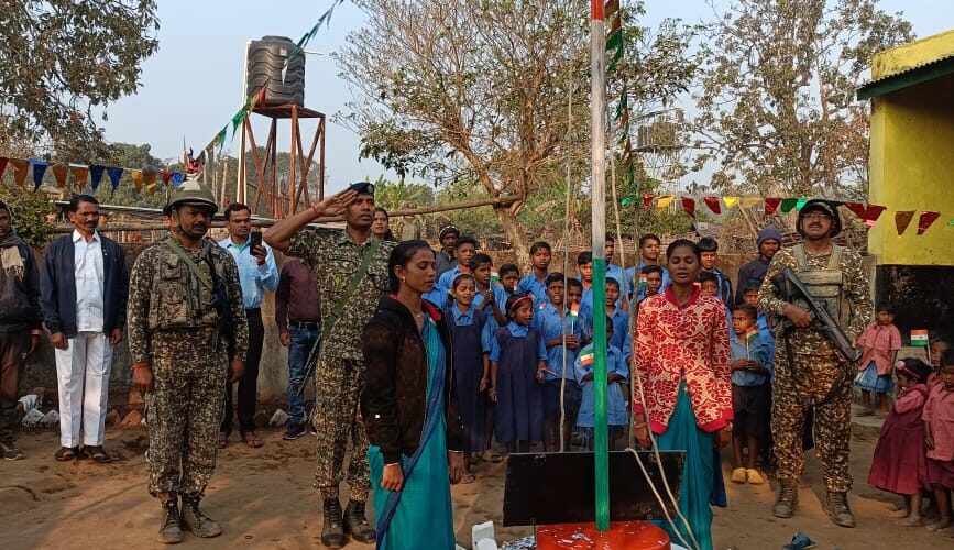 रायपुर। अबूझमाड़ के दुर्गम जंगल क्षेत्र में पहली बार आईटीबीपी के सहयोग से देश का 77वां गणतंत्र दिवस जाटलूर घाटी के जाटलूर गांव में उत्साह और आत्मीय वातावरण में मनाया गया। कार्यक्रम का आयोजन कमांडेंट रोशन सिंह असवाल के नेतृत्व में ई-सीओबी जाटलूर के कमांडर सहायक कमांडेंट राम कुमार मौर्य द्वारा किया गया। इस अवसर पर स्कूल के बच्चों एवं ग्रामीणों के साथ तिरंगा फहराया गया तथा सभी को मिठाइयां वितरित की गईं। इसके बाद आईटीबीपी कैंप परिसर में सामूहिक भोज का आयोजन किया गया, जिसमें जाटलूर एवं हारवेल गांव के 150 से अधिक ग्रामीणों ने सहभागिता की और एक साथ भोजन का आनंद लिया। इस पहल से क्षेत्र में खुशी और अपनत्व का माहौल देखने को मिला।