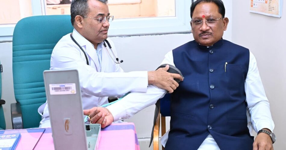 मुख्यमंत्री विष्णुदेव साय ने शिविर में स्वयं स्वास्थ्य जांच कराकर स्वास्थ्य के प्रति जागरूकता का सशक्त संदेश दिया। उन्होंने कहा कि वर्तमान जीवनशैली में शारीरिक गतिविधियों में कमी आने के कारण विभिन्न प्रकार की बीमारियां तेजी से बढ़ रही हैं, ऐसे में नियमित स्वास्थ्य जांच अत्यंत आवश्यक हो गई है। मुख्यमंत्री श्री साय ने कहा कि समय-समय पर स्वास्थ्य परीक्षण कराने से व्यक्ति समय रहते जागरूक रहकर आवश्यक सावधानी अपनाते हुए गंभीर बीमारियों से बचाव कर सकता है। उन्होंने कहा कि स्वस्थ नागरिक ही सशक्त समाज और समृद्ध राज्य की नींव होते हैं।