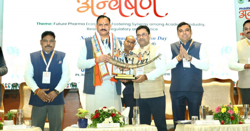 रायपुर। राष्ट्रीय फार्मेसी शिक्षा दिवस के अवसर पर पं. रविशंकर शुक्ल विश्वविद्यालय, रायपुर में आयोजित फार्मा अन्वेषण 2026 कार्यक्रम में छत्तीसगढ़ के स्वास्थ्य मंत्री श्री श्याम बिहारी जायसवाल मुख्य अतिथि के रूप में शामिल हुए। इस कार्यक्रम का आयोजन यूनिवर्सिटी इंस्टीट्यूट ऑफ फार्मेसी द्वारा फार्मेसी काउंसिल ऑफ इंडिया के सहयोग से किया गया। कार्यक्रम की थीम“फ्यूचर फार्मा इकोसिस्टम ऐकडेमिया इंडस्ट्री रिसर्च रेगुलेटरी एंड प्रैक्टिस के बीच समन्वय”रही, जिसमें फार्मेसी शिक्षा, अनुसंधान और उद्योग के बेहतर तालमेल पर विशेष चर्चा की गई।