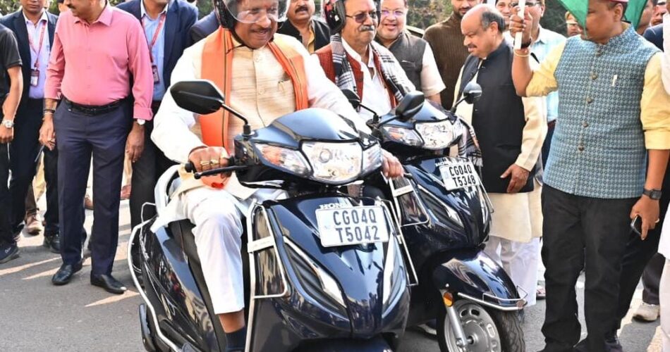 रायपुर। मुख्यमंत्री विष्णुदेव साय आज राजधानी रायपुर के पंडित दीनदयाल उपाध्याय ऑडिटोरियम में राष्ट्रीय सड़क सुरक्षा माह-2026 के अंतर्गत आयोजित राज्य स्तरीय सड़क सुरक्षा सम्मान समारोह में शामिल हुए। इस अवसर पर मुख्यमंत्री श्री साय ने कहा कि जन जागरूकता से सड़क दुर्घटनाओं में कमी आएगी। यातायात नियमों के प्रति सजगता ही हमें जनहानि से बचा सकती है। मुख्यमंत्री श्री साय ने सड़क सुरक्षा का संदेश देते हुए स्वयं हेलमेट पहनकर बाइक चालकों के दल के साथ स्कूटी चलाई।कार्यक्रम में मुख्यमंत्री श्री साय ने राजधानी रायपुर के पंडरी में आधुनिक लाइसेंस सेंटर कार्यालय भवन पंडरी का भूमिपूजन और प्रदेश भर में मुख्यमंत्री ग्रामीण बस योजना के तहत 12 नवीन मार्गों में 12 नवीन बसों का शुभारंभ किया। कार्यक्रम को संबोधित करते हुए मुख्यमंत्री श्री साय ने कहा कि मानव जीवन अनमोल है। उन्होंने बढ़ती सड़क दुर्घटनाओं पर चिंता जाहिर करते हुए यातायात नियमों के पालन की अपील आम नागरिकों से की जिससे वाहन दुर्घटनाओं में कमी लाई जा सके। आज इस कार्यक्रम में सड़क सुरक्षा के लिए कार्य कर रहे राहगीरों, पुलिस मितान, चिकित्सकों, यातायात पुलिस कर्मियों सहित अन्य लोगों को सम्मानित किया गया है। ये सभी लोग इस कार्य में बहुत महत्वपूर्ण भूमिका निभा रहे हैं।