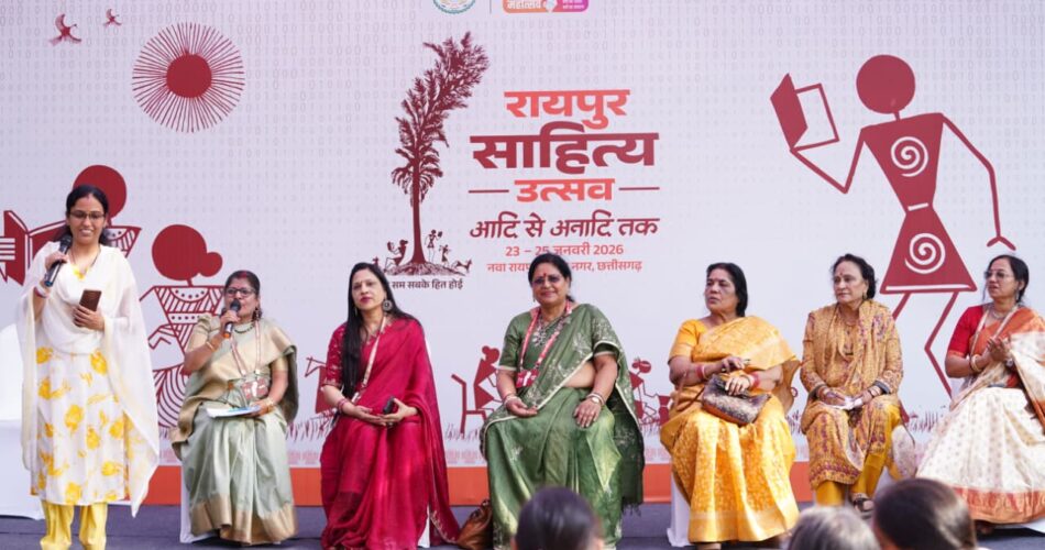 रायपुर। नवा रायपुर में आयोजित रायपुर साहित्य उत्सव 2026 पूरे उत्साह और साहित्यिक गरिमा के साथ जारी है। उत्सव के अंतर्गत सुरजीत नवदीप मंडप में महिला साहित्यकारों के विशेष काव्य-पाठ सहित काव्य एवं व्यंग्य के कई सत्र आयोजित किए गए, जिनमें प्रदेश के विभिन्न अंचलों से आए 90 से अधिक नवोदित एवं समकालीन रचनाकारों ने सहभागिता की।