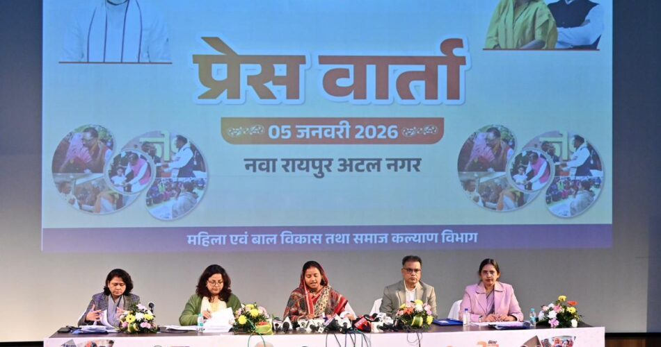 प्रेस वार्ता में मंत्री श्रीमती राजवाड़े ने बताया कि नशामुक्ति, उभयलिंगी व्यक्तियों के सशक्तिकरण, वृद्धाश्रम संचालन, मानसिक रूप से बीमार व्यक्तियों के पुनर्वास तथा ‘सियान हेल्पलाईन जैसी पहलों से समाज के कमजोर वर्गों को सीधा लाभ मिल रहा है। उन्होंने कहा कि मुख्यमंत्री विष्णु देव साय के नेतृत्व में राज्य सरकार सामाजिक न्याय और समावेशी विकास के संकल्प के साथ आगे बढ़ रही है और समाज कल्याण विभाग की योजनाएं धरातल पर प्रभावी रूप से लागू की जा रही हैं।