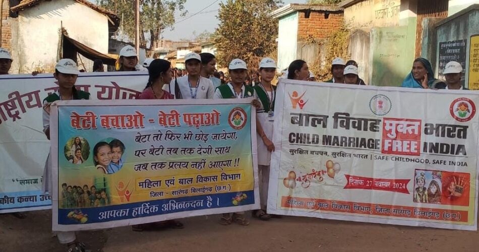 रायपुर। छत्तीसगढ़ को बाल विवाह मुक्त राज्य बनाने के लक्ष्य के साथ महिला एवं बाल विकास विभाग द्वारा “बाल विवाह मुक्त भारत”एवं “बाल विवाह मुक्त छत्तीसगढ़”अभियान के अंतर्गत प्रदेशभर में व्यापक जन-जागरूकता कार्यक्रम संचालित किए जा रहे हैं। मिशन वात्सल्य के अंतर्गत जिला बाल संरक्षण इकाइयों के माध्यम से विद्यालयों, महाविद्यालयों, ग्राम पंचायतों एवं नगरीय निकायों में लगातार जागरूकता गतिविधियां आयोजित की जा रही हैं।