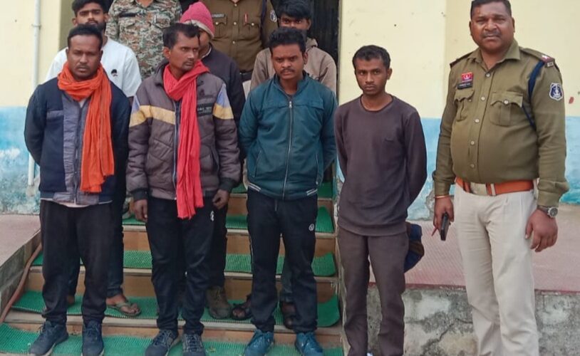 जानकारी के मुताबिक लखनपुर थाना क्षेत्र के गुमगुरा यादवपारा का नन्दलाल पिता स्व. इन्दर राम 35 वर्ष, गुलाब राजवाड़े पिता जयपाल 32 वर्ष निवासी ग्राम गणेशपुर, संजय यादव पिता बहादुर यादव 18 वर्ष निवासी जमगला, तेजू राजवाड़े पिता स्व. दिलोस राजवाड़े 36 वर्ष निवासी गणेशपुर, प्रेम कुमार पिता अमर साय राजवाड़े 23 वर्ष निवासी गणेशपुर, महेश्वर राम पिता चांदी राम 25 वर्ष निवासी ग्राम गणेशपुर व सतेन्द्र कुमार पिता सुखसाय राजवाड़े 40 वर्ष निवासी ग्राम मुड़सा थाना गांधीनगर 29 जनवरी को सुबह अमेरा खदान में संदिग्ध अवस्था में पहुंचे थे। खदान प्रबंधन व स्टाफ के द्वारा कोयला खदान परिसर में क्या कर रहे हो कहकर पूछताछ किया गया तो सभी पुलिस की उपस्थिति में ही विवाद करने लगे। खदान प्रबंधन की सूचना पर थाना लखनपुर पुलिस टीम मौके पर पहुंचकर तस्दीक की तो सभी पुलिस की उपस्थिति में ही खदान प्रबंधन के लोगों से विवाद करते हुए धमकी देकर मारपीट करने पर आमादा होने लगे। पुलिस ने इन्हें काफी समझाने का प्रयास किया किन्तु ये संज्ञेय अपराध घटित करने बार-बार अग्रसर हो रहे थे। संज्ञेय अपराध घटित होने से रोकने के लिए पुलिस ने धारा 170 बीएनएसएस के तहत इन्हें गिरफ्तार किया और धारा 126, 135 (3) बीएनएसएस का इस्तगासा पेश किया है। पुलिस टीम द्वारा इनके कब्जे से 06 दोपहिया वाहन एवं 10 बोरा कोयला कुल 03 लाख रुपये का संपत्ति जप्त किया है। कार्रवाई में थाना प्रभारी लखनपुर उप निरीक्षक सम्पत पोटाई, सहायक उप निरीक्षक निशिकांत, प्रधान आरक्षक रवि सिंह, सुरजीत कोरी, आरक्षक राकेश एक्का, दाराठ राजवाड़े, जितेंद्र सांडिल्य, पैमाशी राम, श्याम सुन्दर, जगेश्वर बघेल सक्रिय रहे।