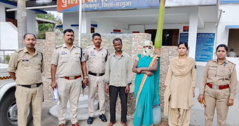 बता दें कि 31 मार्च की रात को भगवानपुर खुर्द निवासी मिथलेश कुजूर थाना गांधीनगर आकर बताया कि 07 दिवस पूर्व मोहल्ले के ही बृजलाल अगरिया उसके घर में आया था और शराब पीने के लिए अपने घर चलने की जिद्द करने लगा। इसी बात पर दोनों में विवाद हुआ तो बृजलाल ने मिथलेश का मोबाइल तोड़ दिया था। इसके बाद दोनों आपस में मारपीट करने लगे, और मिथलेश ने बृजलाल के सिर में लाठी से वार कर दिया, और उसकी मौके पर ही मौत हो गई थी। बृजलाल के सिर से खून निकल रहा था, इसके बाद मिथलेश अपनी पत्नी राजकुमारी की सहायता से शव को अपने घर में सुअरों के लिए बनाए गए गड्ढे में डाल दिया था। मामला आरोपी के द्वारा ही संज्ञान मेे लाने पर डीआईजी एवं एसएसपी सरगुजा राजेश कुमार अग्रवाल ने पुलिस टीम को मामले में त्वरित कार्रवाई करने और शव को बरामद करने के निर्देश दिए थे। पुलिस टीम ने नगर पुलिस अधीक्षक राहुल बंसल के नेतृत्व में 01 अप्रैल को भगवानपुर खुर्द के लोहारपारा जाकर तफ्तीश की और अकेले रहने वाले बृजलाल अगरिया का शव तहसीलदार एवं पुलिस टीम की उपस्थित में मिथलेश कुजूर के घर में बनाए गए गड्ढे से बरामद किया था। शव की पहचान परिजनों एवं ग्रामीणों के द्वारा बृजलाल के रूप में की गई। पुलिस ने आरोपियों के विरूद्ध धारा 103 (1), 238, 3(5) बीएनएस का अपराध पंजीबद्ध किया और आरोपी मिथलेश कुजूर पिता सुंदर कुजूर 41 वर्ष व राजकुमारी पति मिथलेस कुजूर 34 वर्ष को गिरफ्तार करके जेल भेज दिया है। मिथलेश कुजूर ने पूछताछ में बताया कि मृतक बृजलाल उसकी पत्नी से अक्सर मिलना-जुलना करता था, इसे लेकर दोनों के मध्य पहले भी विवाद हुआ था। घटना दिनांक को दोनों को आरोपी ने साथ में देखा, और अवैध संबंध की आशंका पर आवेश में आकर लाठी से सिर में गंभीर चोट पहुंचाकर उसकी हत्या करके पत्नी की सहायता से शव को गड्ढे में डाल दिया था। कार्रवाई में नगर पुलिस अधीक्षक के नेतृत्व में थाना गांधीनगर से उप निरीक्षक दिलीप दुबे, प्रधान आरक्षक रुस्तम सिंह सोनवानी, अमित प्रताप सिंह, सतीश उपाध्याय, महिला आरक्षक प्रिया रानी, आरक्षक अमीर सिंह, घनश्याम देवांगन, सुल्तान अहमद, संदीप सिंह, उमेश गुप्ता, आनंद केरकेट्टा, मोतीलाल केरकेट्टा सक्रिय रहे।