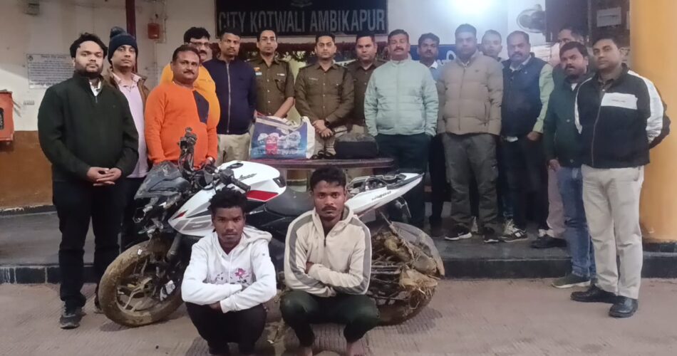 जानकारी के मुताबिक रानी सती मंदिर कॉलोनी निवासी व्यवसायी अनिल अग्रवाल का शहर के श्री राम मंदिर रोड में मोबाइल का थोक कारोबार है, वे हिंदुस्तान लीवर के फ्रेंचाइजी धारक भी हैं। अग्रवाल इंटरप्राइजेज इन्द्रपस्थ के संचालक अनिल अग्रवाल रविवार की रात को रोजाना की तरह दुकान बंद करके दिन भर की बिक्री की रकम लगभग 20 लाख रुपये और तीन मोबाइल फोन बैग में रखकर स्कूटी से अपने घर लौट रहे थे। सत्तीपारा में कैलाश मोड़ के पास अंधेरे में दीवार के पीछे घात लगाकर बैठे किसी व्यक्ति ने अचानक उन पर बांस के डंडे से हमला कर दिया, जिससे खून निकलने लगा और वे बुरी तरह से लहूलुहान हो गए। घटना में अनिल अग्रवाल स्कूटी सहित सड़क पर गिर गए, वे शोर मचा पाते, इसके पहले बदमाश उनके हाथ से रुपये से भरा बैग छीनकर अंधेरे में फरार हो गए। शहर के सज्जन कॉलोनी निवासी अंकित गोयल पिता सज्जन गोयल ने घटना की जानकारी थाना कोतवाली में दी थी, जिस पर पुलिस ने थाना कोतवाली में बीएनएस की धारा 109(1), 311, 309(6), 3(5) पंजीबद्ध किया था और आहत का डॉक्टरी मुलाहिजा कराया था। इसके बाद वरिष्ठ पुलिस अधीक्षक सरगुजा राजेश अग्रवाल के निर्देशन में अतिरिक्त पुलिस अधीक्षक अमोलक सिंह ढिल्लो एवं नगर पुलिस अधीक्षक राहुल बंसल के मार्गदर्शन में थाना अंबिकापुर, मणिपुर, गांधीनगर एवं यातायात पुलिस को कंट्रोल रूम के माध्यम से निर्देश देकर शहर के सभी प्रमुख निकास मार्गों पर कड़ी नाकाबंदी करके वाहनों की सघन चेकिंग एवं पूछताछ की जाने लगी। साइबर सेल की टीम को घटनास्थल रवाना किया गया। टीम ने सीसीटीवी फुटेज की बारीकी से अवलोकन किया। प्राप्त सीसीटीव्ही फुटेज, पूछताछ के बीच मुखबिर से पुलिस को पता चला कि कुछ संदिग्ध जगदीशपुर के खेतों में छिपे हुए हैं। पुलिस टीम खेत में संदिग्धों को पकड़ने के लिए घेराबंदी की तो दो संदिग्ध भागने लगे। इस दौरान संदिग्धों के पास मौजूद पैसे से भरा बैग गिर गया एवं कुछ ही दूरी पर खड़ी सफेद रंग की पल्सर एनएस मोटरसाइकिल को छोड़कर आरोपी वहां से भाग गए। पुलिस ने पल्सर मोटरसाइकल एवं नकदी रकम 18 लाख रुपये जप्त कर लिया। फरार दोनों आरोपियों की पतासाजी में थाना प्रभारी कोतवाली निरीक्षक शशिकांत सिन्हा एवं साइबर सेल प्रभारी सहायक उप निरीक्षक अजीत मिश्रा की टीम ने आरोपी के संभावित ठिकानों पर दबिश दी। इस दौरान तकनीकी माध्यमों से पता चला कि आरोपी जगदीशपुर के आस-पास ही खेत में छिपे हंै। आसपास के इलाके को पूरी तरह से घेराबंदी करके पुलिस टीम ने इन्हें हिरासत में लिया। पूछताछ में आरोपियों ने अपना जुर्म स्वीकार किया।