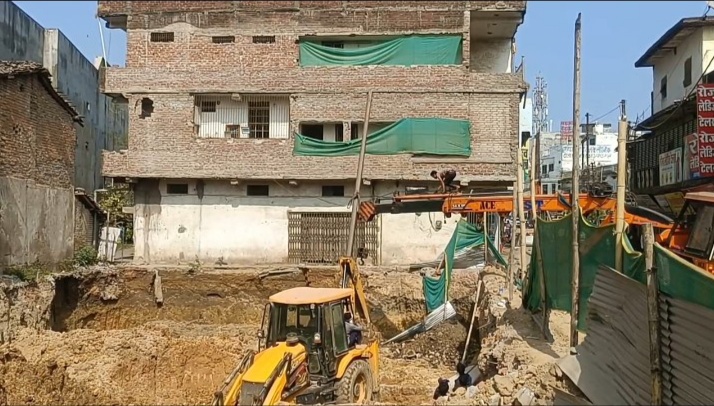 जानकारी के मुताबिक संगम चौक में मुख्य मार्ग से लगे दुकानों को तोड़वाने के बाद इस भूमि पर कांप्लेक्स का निर्माण दिनेश कश्यप के द्वारा करवाने की तैयारी की जा रही है। मौके पर अंडरग्राउंड निर्माण के लिए गहरा गड्ढा खोदवाया गया है। इससे लगा डॉ. धनन्जय प्रसाद का ग्राउंड फ्लोर सहित तीन मंजिला मकान है, जिसमें फिलहाल कोई नहीं रहता है, वर्तमान में वे परिवार के साथ रांची में निवासरत हैं और मकान में ताला बंद है। मकान से सटकर अंडरग्राउंड निर्माण कराने के लिए गहरा गड्ढा खोदा गया है, इसके दो हिस्से में बड़े-बड़े मकान हैं। इनसे सटाकर जिस प्रकार भूतल से नीचे गहरा गड्ढा खोदा जा रहा है, इसे लेकर खतरे की स्थिति बन गई है।